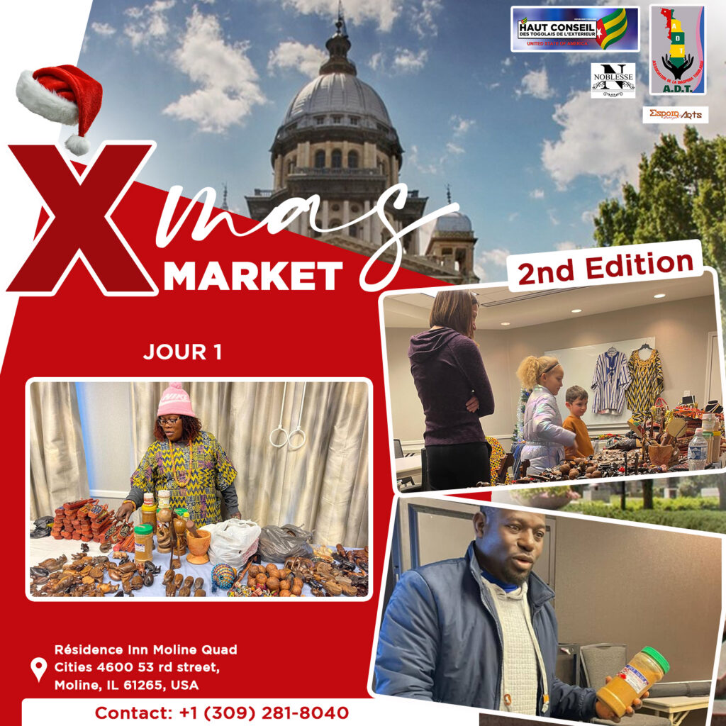 Mise en place du marché de Noel à Molline: Chaque fin d’année, le HCTE-USA en collaboration avec d’autres associations Togolaises aux USA organisent le marché de Noel (XMAS-Market). Une occasion pour la déléguée HCTE-USA de mettre en lumière les activités de vente des uns et des autres.